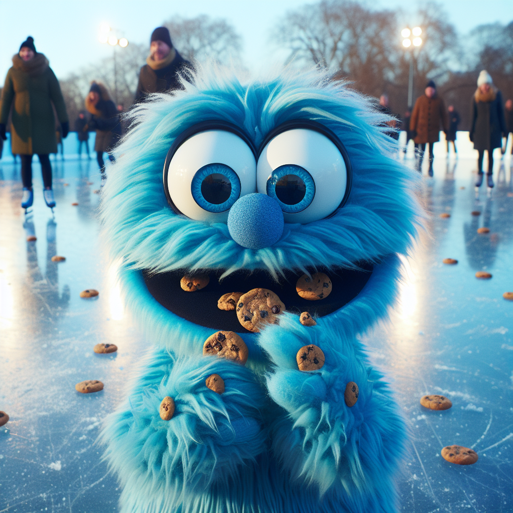 Frozen Treats: Cookie Monster Enjoying Cookies on Ice