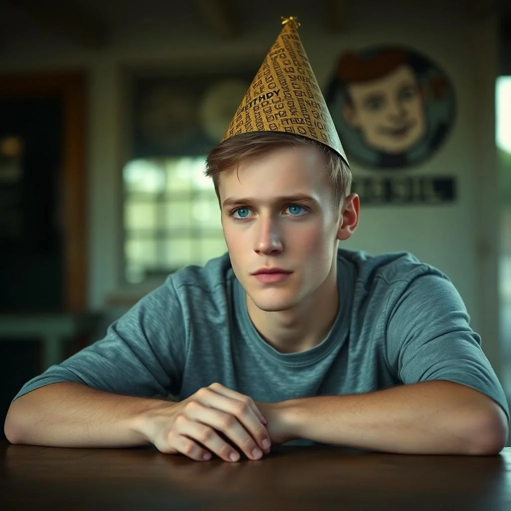 The party hat? It’s not a celebration of their expectations, but a mockery of them. My blue eyes cut through the facade, my posture screams silent defiance. This terrain – my terrain – is nothing more than a launching pad for something extraordinary.