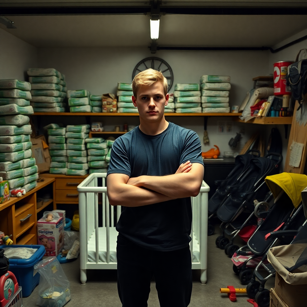 The garage door opened to reveal a treasure trove of toddler essentials. Rows upon rows of Pampers lined the shelves - different sizes, different styles, a veritable fortress of diapering preparedness. Strollers hung from specially designed hooks, each one a potential adventure waiting to happen. Bottles were meticulously organized, and Gerber products stood like soldiers of nutrition.