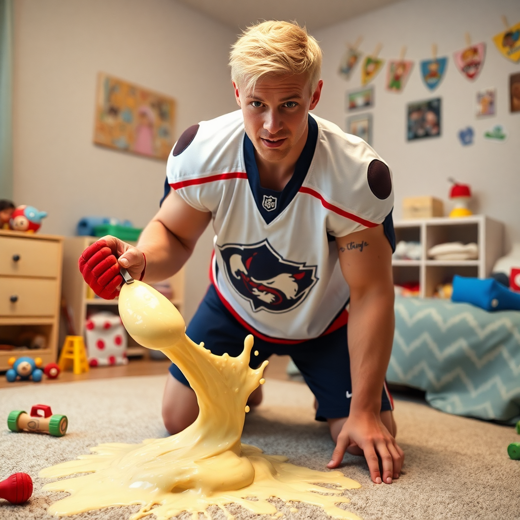 The real excitement came when they decided to bake a butter cake together. Flour danced through the air like a puck sailing across the ice. Eggs cracked with the same intensity as a hockey stick hitting the puck. And then - SPLAT! Cake batter erupted across the floor, creating a messy masterpiece that would make even the most seasoned hockey coach laugh.