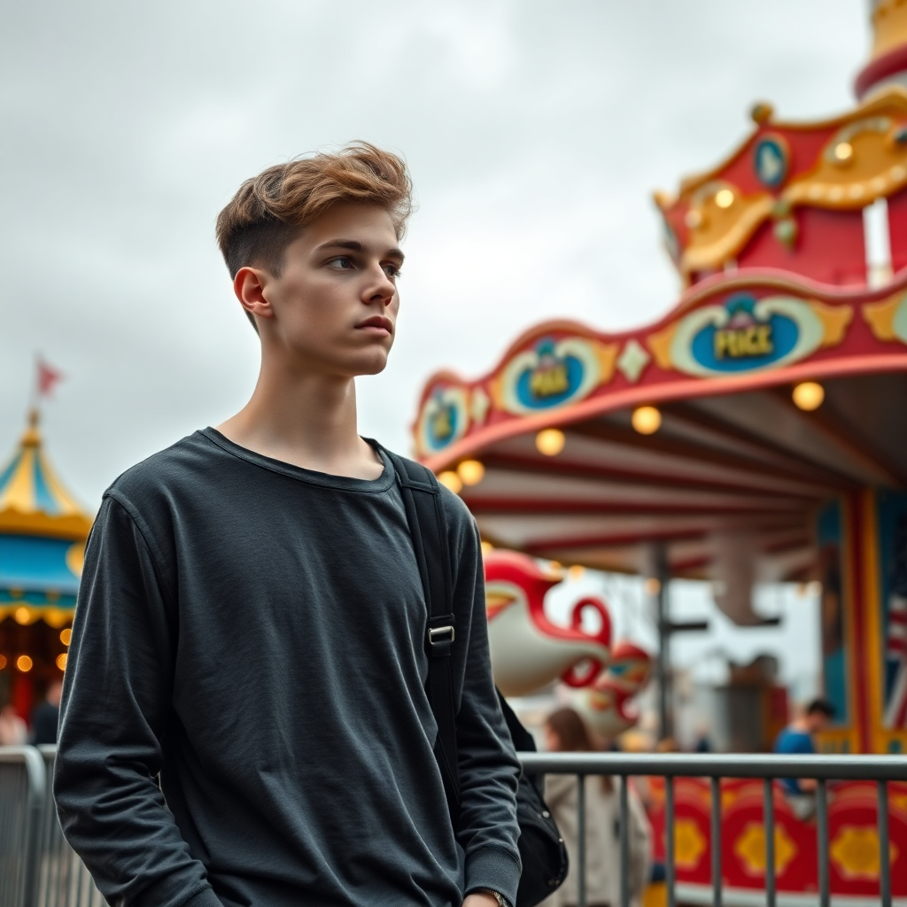 Tyler watched, heart swelling, as the ride began to spin slowly, then faster. Mitchell’s laughter rang out, pure and joyful, blending with the hum of the carnival around them. The cloudy sky seemed to soften the world, making this moment feel like a secret treasure just for the two of them.